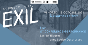 EXIL 2021 est une saison culturelle proposée par Aporia Culture, Pingpong, le Théâtre de la Maison du Peuple, le cinéma de Millau et Grands Causses Cinéma. Avec le soutien de la SAIF, la Copie privée, la Région Occitanie / Pyrénées-Méditerranée, et l'accueil de la Communauté de Communes Millau Grands Causses. En partenariat avec E2 Communication, la librairie Syllabes, la Filature du Mazel, la VRAC et Occitanie Livre & Lecture.