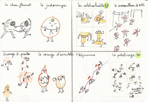 Cette exposition présente les illustrations de l'album jeunesse Les dieux du stand. Celui-ci a été imaginé par Françoise de Guibert qui a trouvé les jeux de mot et dessiné les scènes des légumes sportifs. Le livre est publié par les éditions Glénat.