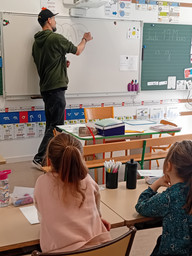 Dans le cadre du projet Mano a Mano mis en oeuvre à l'école Jean-Henri Fabre de Ségur, le street artiste Rafat a rencontré les élèves pour un premier atelier de sensibilisation au street art et d'initiation à la calligraphie. Comme quelques unes de ses oeuvres sont exposées à l'Hôtel du Viaur, il a pu les présenter aux élèves sur place. Ensuite, il s'inspirera des BD des élèves pour créer avec eux des fresques dans l'école en mai.