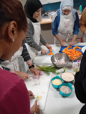 Le 19 décembre, le 4e atelier était dédié à la cuisine "petit budget" et nous avons concocté une recette au potimarron, que les participantes ont écrite en français. Pendant chacun des ateliers, le vocabulaire est répertorié.